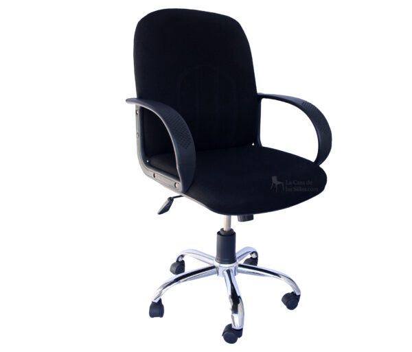 - Espaldar Y Asiento Acolchados Tapizados En Tela. - Sistema Basculante - Apoya Brazos En Polipropileno Con Puntos Antiestrés. - Elevación Neumática. - Base Cromada de 5 puntas con ruedas