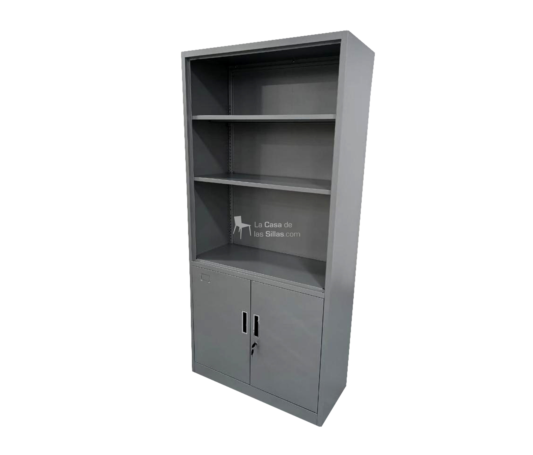 Descripción: Biblioteca Metálica– Elaborada metal – 03 Niveles superiores – 02 Niveles inferiores con puertas en MDF – Medidas: –  Alto: 180 CM – Ancho: 40 CM – Largo: 80 CM