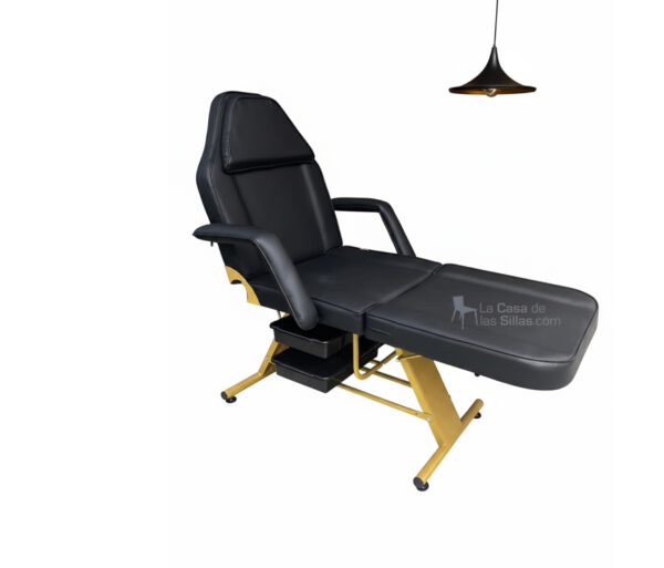 Descripción: CAMILLA TRENEX – Tapizada en  bipiel en color negro – Medidas: 60cm de ancho x 182cm de largo x 122cm de altura – Cuenta con orificio para la cara