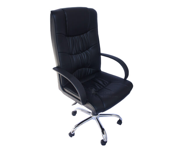Descripción: Silla Presidencial Checo - Asiento y espaldar elaborado BiPiel   . - Brazos En Polipropileno Con Puntos Antiestrés. - Base metálica de 5 puntas con ruedas. - Soporte Cervical y Soporte Lumbar - Sistema Basculante. - Sistema de elevación neumática