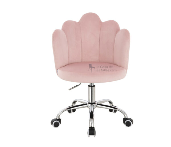Descripción: CLARISSA CROMADA – Asiento y espaldar acolchado – Tapizado en piel de durazno – Base cromada de 5 puntas con ruedas -Sistema de elevación neumática.