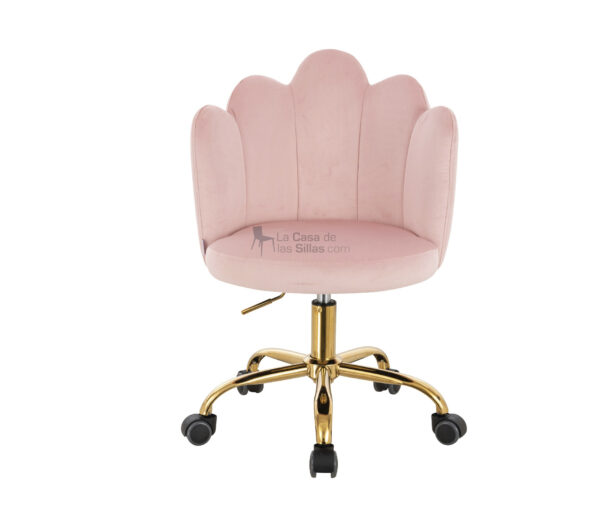 Descripción: CLARISSA GOLD¡rosa – Asiento y espaldar acolchado – Tapizado en piel de durazno – Base dorada de 5 puntas con ruedas -Sistema de elevación neumática.Todas nuestras sillas están fabricadas con materiales resistentes y duraderos, cumpliendo con estándares de seguridad y ergonomía.