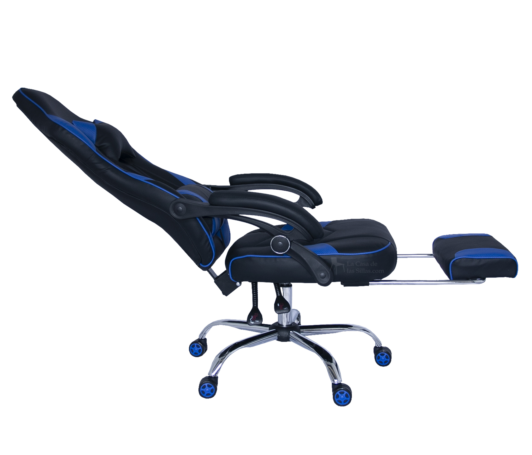 Descripción: Gamer con posa Pies - Cómodo respaldar y asiento elaborado en de alta calidad acolchado. - Estructura interna de madera. - Soporte Cervical (Almohadilla ajustable) - Soporte Lumbar (Almohadilla ajustable) - Apoyabrazos fijo - Silla Reclinable entre: 80-180 grados de inclinación (ajustable). - Elevación neumático (altura ajustable) - Base de 05 punta metal Cromada.