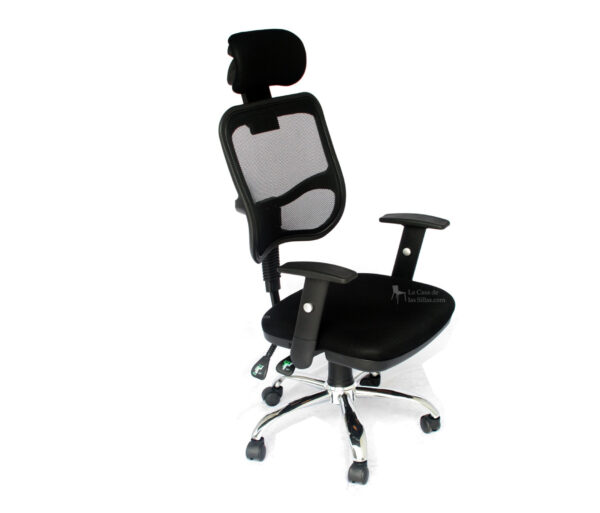 Descripción: Silla Presidencial Jury - Asiento y espaldar elaborado en Tela mesh. - Brazos ajustables en altura . - Base Cromada de 5 puntas con ruedas - Soporte Cervical y Soporte Lumbar - Sistema de Syncro Contacto. - Sistema de elevación neumáticaTodas nuestras sillas están fabricadas con materiales resistentes y duraderos, cumpliendo con estándares de seguridad y ergonomía.