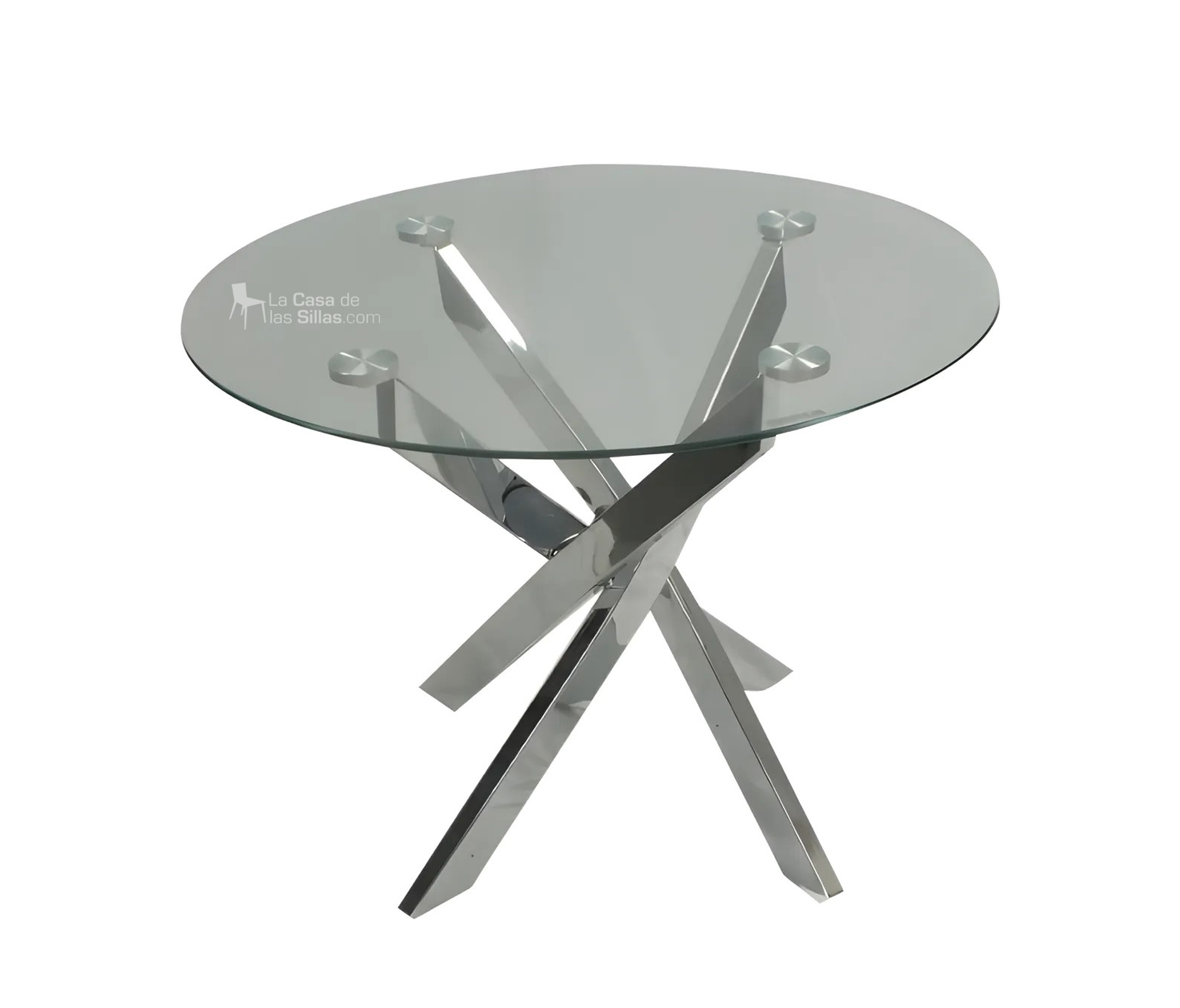 Descripción: Mesa – Elegante Diseño. – Estructura metálica – Base cromada – Tope vidrio – Medidas el tope 60 cm de diámetro.
