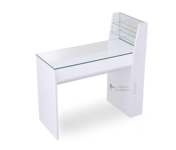 Descripción: Mesa Manucurista – Mesa elaborada en MDF y vidrio – 115 largo – 48 ancho – 75 altura