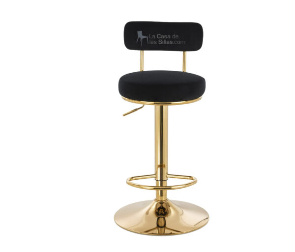 Descripción: Saona multifuncional – Asiento y espaldar tapizados en  piel de durazno – Estructura y base dorada – sistema elevación neumática – Altura Minima del hidraulico: 56cm – Altura maxima del hidraulico: 75cm