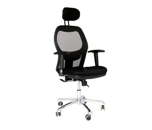 Descripción: Silla Novo Paler – Asiento tela mach y espaldar elaborado en fibra. – Brazos ajustables en altura. – Base Cromada de 5 puntas con ruedas – Soporte Cervical y Soporte Lumbar – Sistema de Sincro Contacto y – sistema elevación neumáticaTodas nuestras sillas están fabricadas con materiales resistentes y duraderos, cumpliendo con estándares de seguridad y ergonomía.