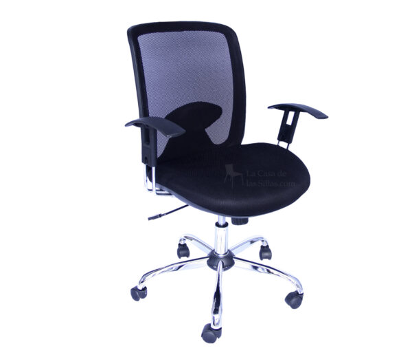 Descripción: Silla Palermo junior ejecutiva -Asiento y espaldar elaborado en tela mesh - Brazos de nylon ajustable en altura - Base Cromada de 5 puntas con ruedas - Soporte Lumbar - Sistema Basculante. - Sistema de elevación neumáticaTodas nuestras sillas están fabricadas con materiales resistentes y duraderos, cumpliendo con estándares de seguridad y ergonomía.