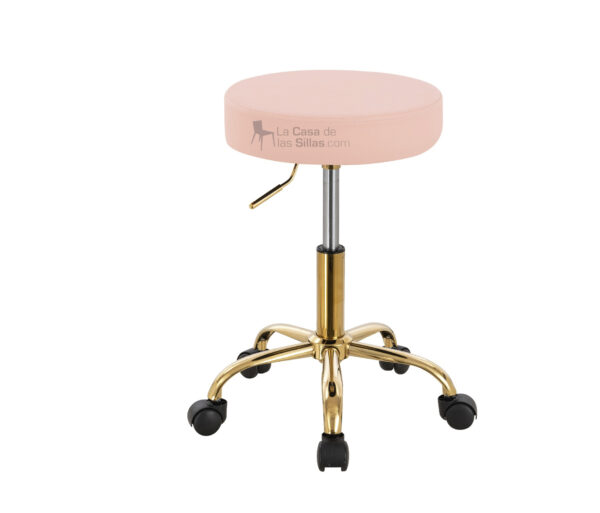 Descripción: TABURETE ALEX GOLD ROSA – Asiento colchado en Bi-piel. – Base Cromada de 5 puntas con ruedas – Sistema de elevación neumática.Todas nuestras sillas están fabricadas con materiales resistentes y duraderos, cumpliendo con estándares de seguridad y ergonomía.
