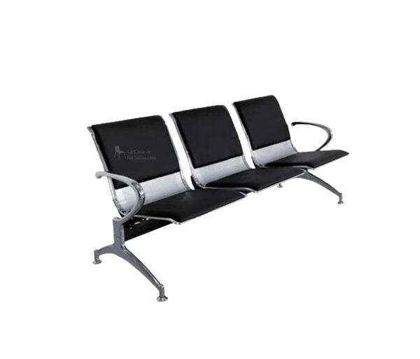 Descripción: Tándem New York Bi-piel -Espaldar y asiento elaborados en metal microperforado revestido en bi-piel. -Base y brazos en metal cromado. -Medidas: -Espaldar: 78cm -Asiento: 42cm -Profundidad: 56cm -Ancho: 175cmTodas nuestras sillas están fabricadas con materiales resistentes y duraderos, cumpliendo con estándares de seguridad y ergonomía.