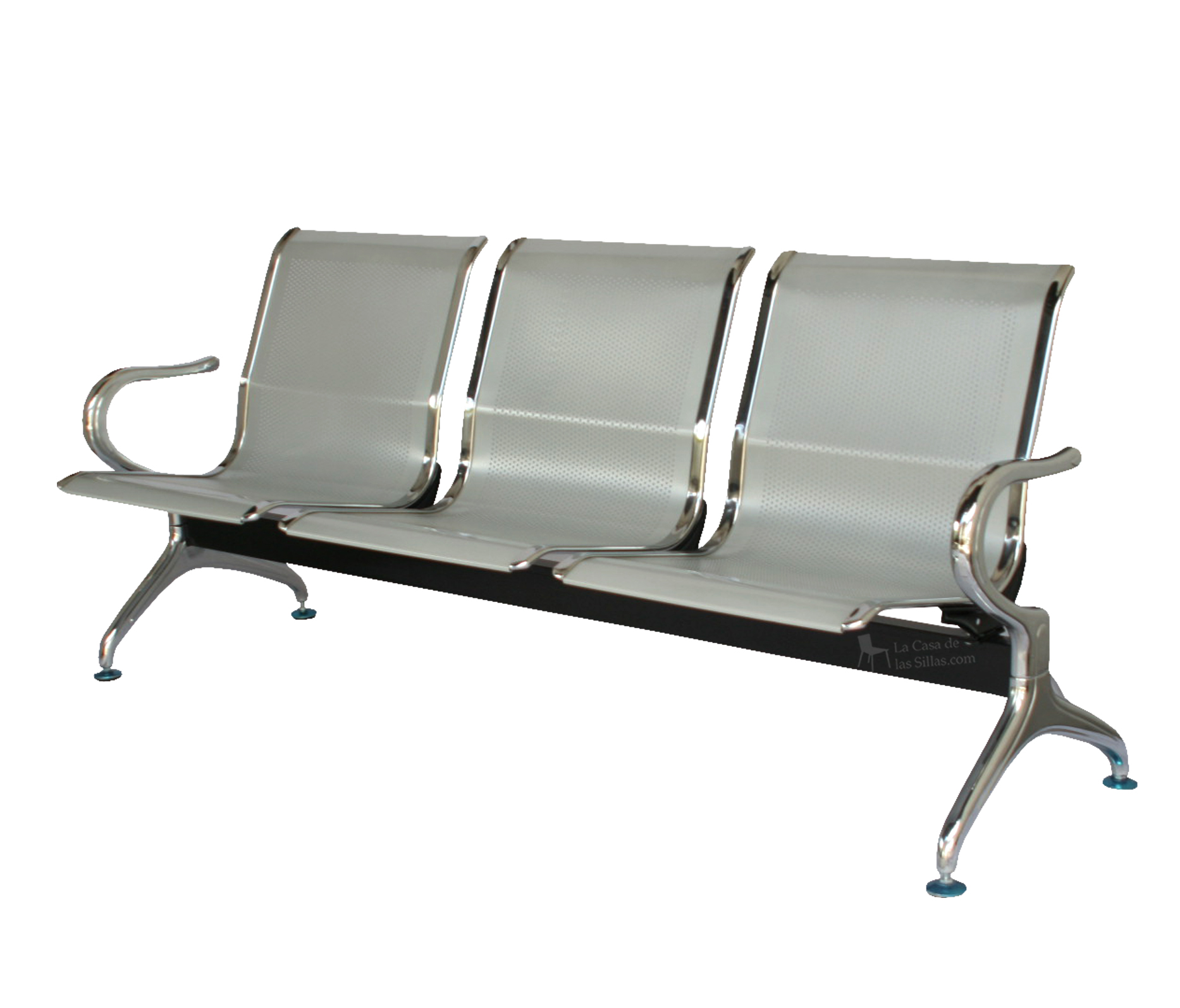Descripción: Silla visitante Tándem Torino 03 puesto -Espaldar y asiento elaborados en metal microperforado. -Base y brazos en metal cromado. -Medidas: -Espaldar: 78cm -Asiento: 42cm -Profundidad: 56cm -Ancho: 175cm