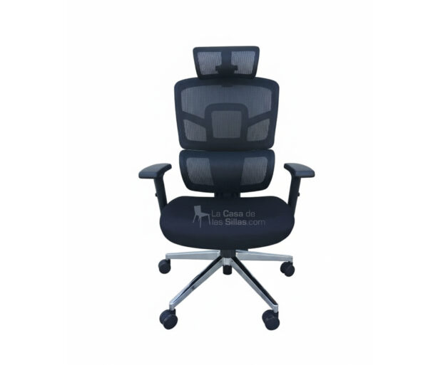 Descripción: Silla Presidencial VIENA – Asiento tela mach y espaldar elaborado en fibra. – Brazos ajustables en altura. – Base Cromada de 5 puntas con ruedas – Soporte Cervical y Soporte Lumbar – Sistema de Sincro Contacto y – sistema elevación neumáticaTodas nuestras sillas están fabricadas con materiales resistentes y duraderos, cumpliendo con estándares de seguridad y ergonomía.